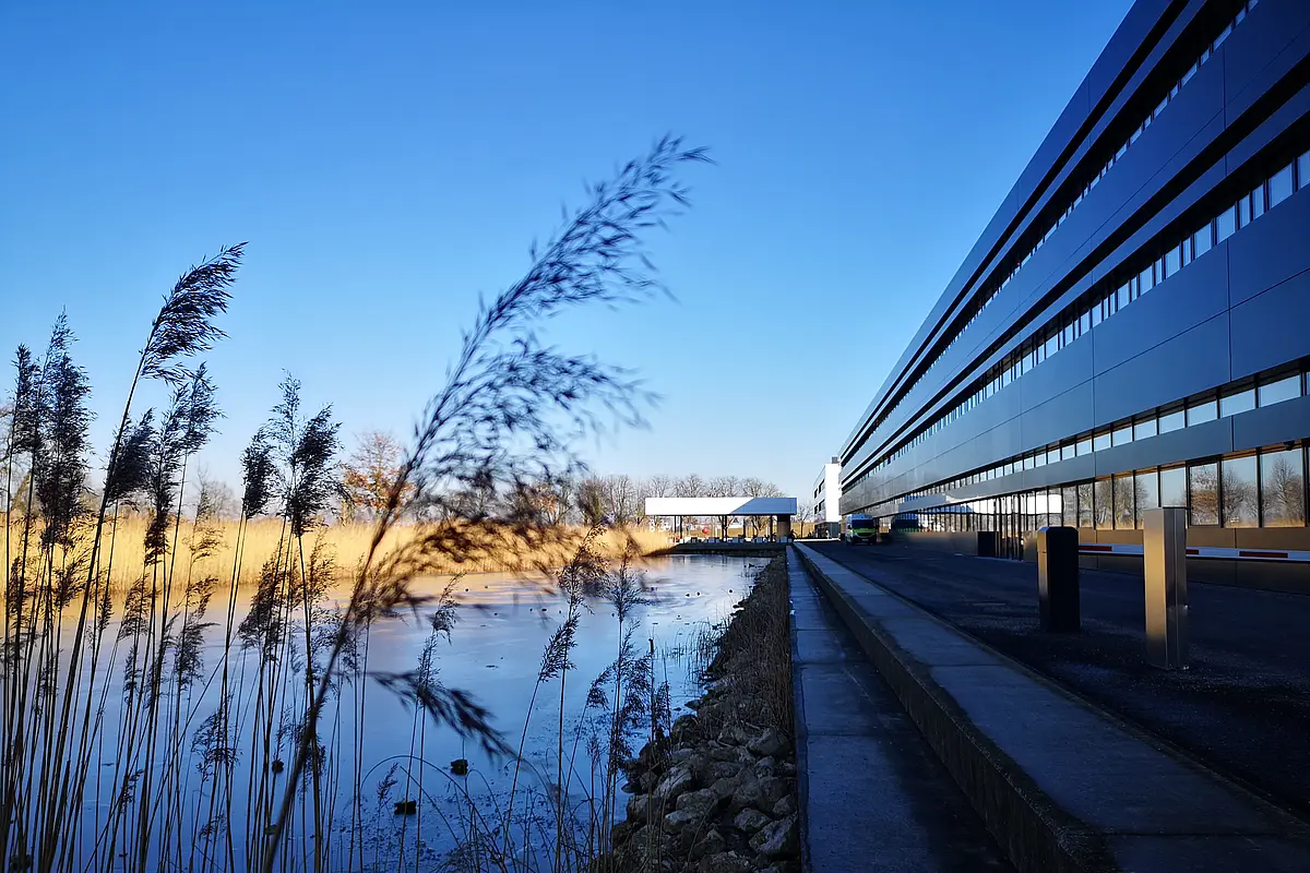 Das moderne Gebäude der Hochschule Neu-Ulm befindet sich im Neu-Ulmer Stadtteil Wiley. Der Campus ist umgeben von weitläufigen Grünflächen des ehemaligen Landesgartenschau-Geländes.